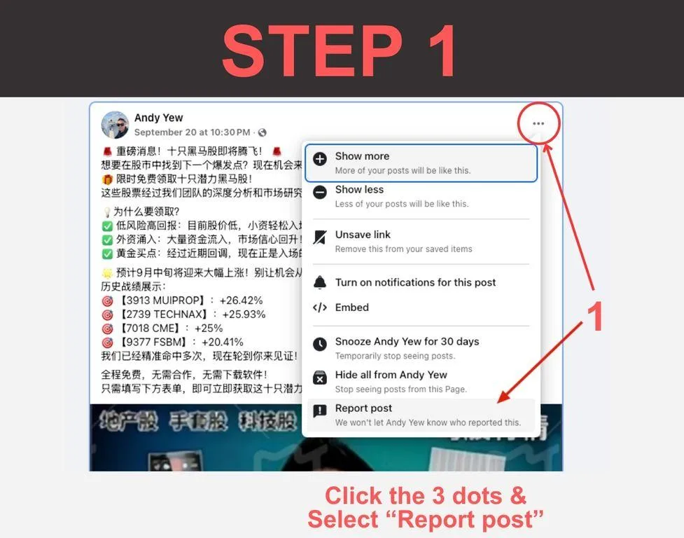 Select the option "Report Page / Report Profile/ Report Post".